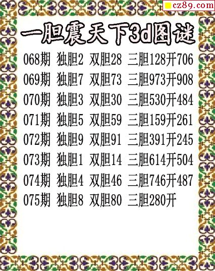> 一胆震天下独胆2026075期3d图谜(原创)