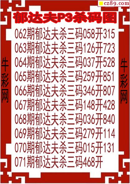 26年071期郁达夫P3杀码图