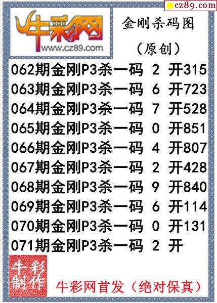 金刚杀码071期体彩P3图迷(原创)