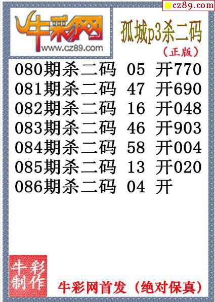 孤城杀码086期体彩P3图谜(原创)