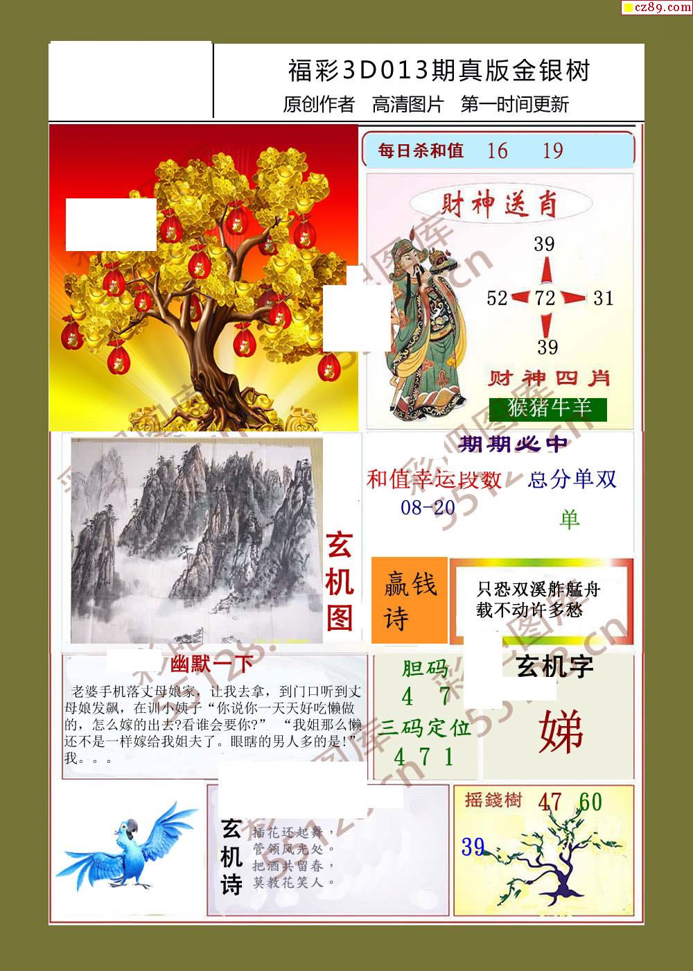 金银树26年013期福彩3d字画谜
