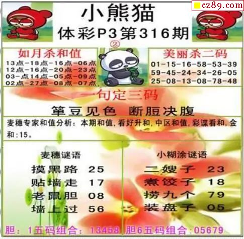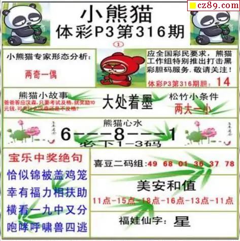 首页 > 排列3图谜 > 小熊猫2025316期体彩P3图谜
